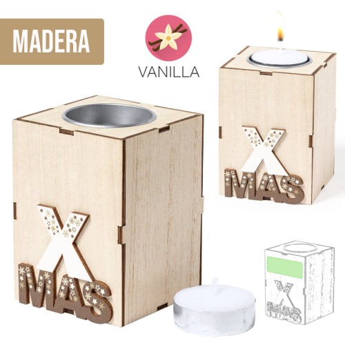 Vela aromática navideña de línea nature y fabricada en madera. Con aroma vainilla y de original diseño navideño en distintos tonos de madera natural, conviertiéndola en un regalo ideal para decorar cualquier estancia y espacio. Presentada en caja individual de diseño eco. Aroma Vainilla